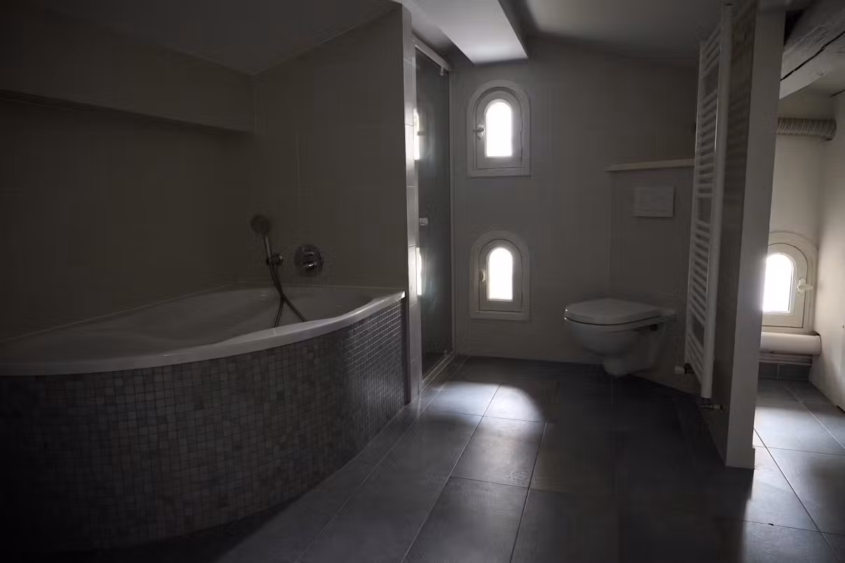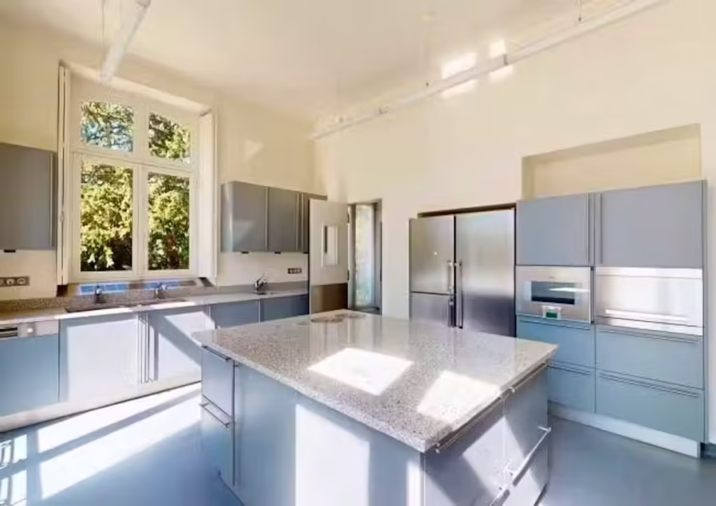 Das Hauptgebäude hat 600 Quadratmeter Wohnfläche. Der majestätische Eingang führt zu zwei Empfangsräumen mit Blick auf den Park, einem Schlafzimmer mit Bad/WC, einer Küche und einer Toilette. Den ersten Stock liess sich der deutsche Modeschöpfer zu einer 120 Quadratmeter grossen Werkstatt umbauen. Im zweiten Obergeschoss gibt es fünf weitere Schlafzimmer und zwei Badezimmer.