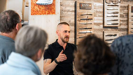 Wir bieten monatliche Führungen durch unsere Messermanufaktur an, ergänzt mit einem Messerschärf-Workshop und Apéro. Individuelle Besichtigungen sind auch während unseren Bürozeiten möglich. Für Gruppen von Firmen, Wirtschaftsverbänden und Kundenevents organisieren wir gerne ebenfalls eine umfassende Führung, wo unsere Handwerkskunst live erlebt werden kann; auf Wunsch auch mit Messerschärf-Workshop und Apéro. Anfragen bitte an: info@sknife.com