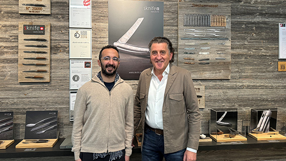 Mohammed Al-Khalifa hat aus Begeisterung für hochwertige Materialen und präzise Verarbeitung das sknife Taschenmesser in Damaststahl mit Diamanten bestellt. Fasziniert von Produkt, Beratung und Service hat er bei seinem nächsten Aufenthalt in der Schweiz unsere Messermanufaktur besucht. Sein hohes Verständnis für Luxus-Materialien wie Damast, Diamanten und Karbon und deren stilvollen Kombinationen führte zu Spezialanfertigungen für sein in Aufbau befindliches Messer-Business im Premium-Segment.