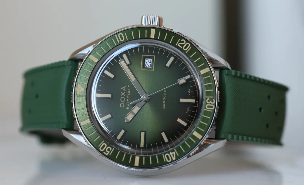 Die Sub 200 II interpretiert Doxas […] Taucheruhr mit verfeinerten Proportionen und neu eingeführter visueller Tiefe neu. Erstmals in der permanenten Sub-Kollektion verleiht ein Fumé-Zifferblatt dem Design einen subtilen Retro-Charakter, ergänzt durch eine markante schwarze DLC-Version mit dem neuen Redcoral-Zifferblatt. Ein schlankeres Profil sowie charakteristische Armbänder aus Edelstahl im ‚Mesh‘-Stil oder Armband Dive Flex aus Kautschuk unterstreichen ihre Vielseitigkeit und bewahren zugleich ihre professionelle Taucher-DNA.